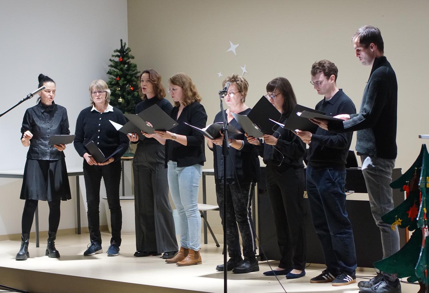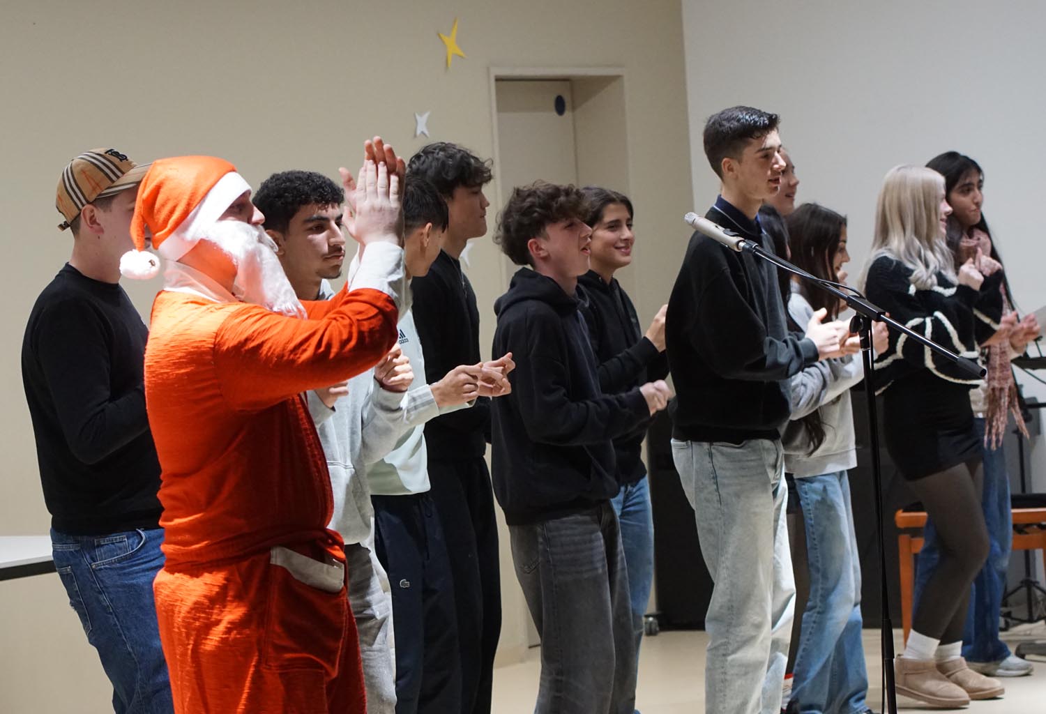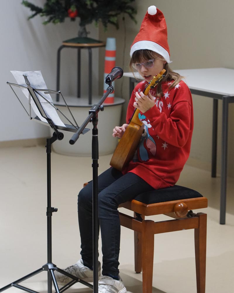 Unsere Schüler und Lehrer übten wochenlang, um allen Anwesenden eine grandiose Show zu bieten. Und so wurde es am 11. Dezember 2025 mit Gesang und instrumentellen Stücken mal andächtig leise und rhythmischen Stücken und einem großen Finale der Fischer Allstars ganz laut. Besonders stolz sind wir auf unsere internationalen Beiträge. Unsere DAZ-Schüler haben ein kleines Theaterstück aufgeführt, es gab „A Christmas Carol“ in der Originalsprache und unsere Musiklehrerin spielte noch ein französisches Weihnachtslied.